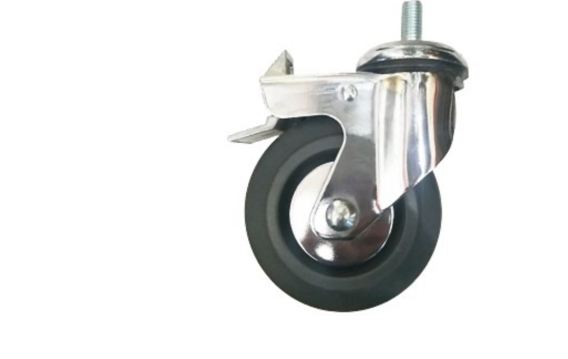 چرخ بیمارستانی آبکاری کروم پیچی گردان ترمزدار قطر ۷۵ میلی متر