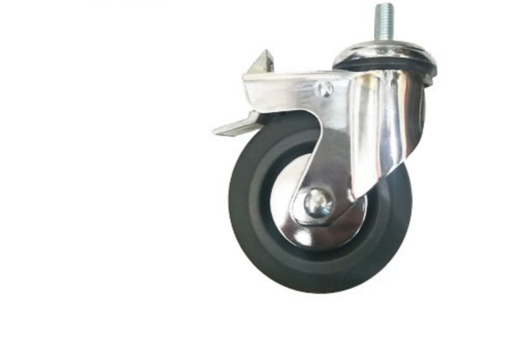 چرخ بیمارستانی آبکاری کروم پیچی گردان ترمزدار قطر ۱۰۰ میلی متر