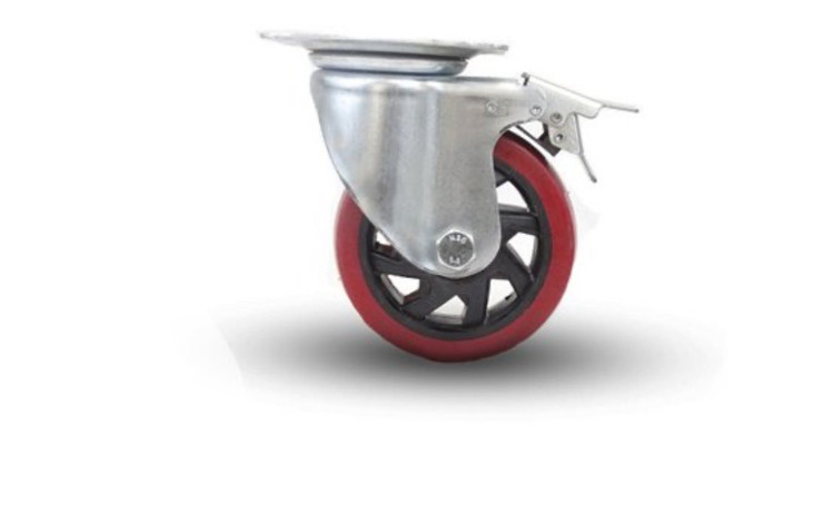 چرخ پلی آمید قرمز لوکس گردان ترمزدار قطر ۱۲۵ میلی متر