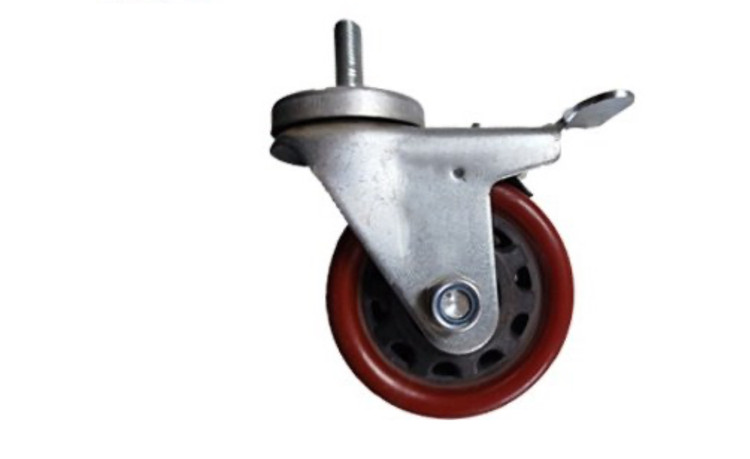 چرخ پلی آمید قرمز پره ای پیچی گردان ترمزدار قطر 100 میلی متر