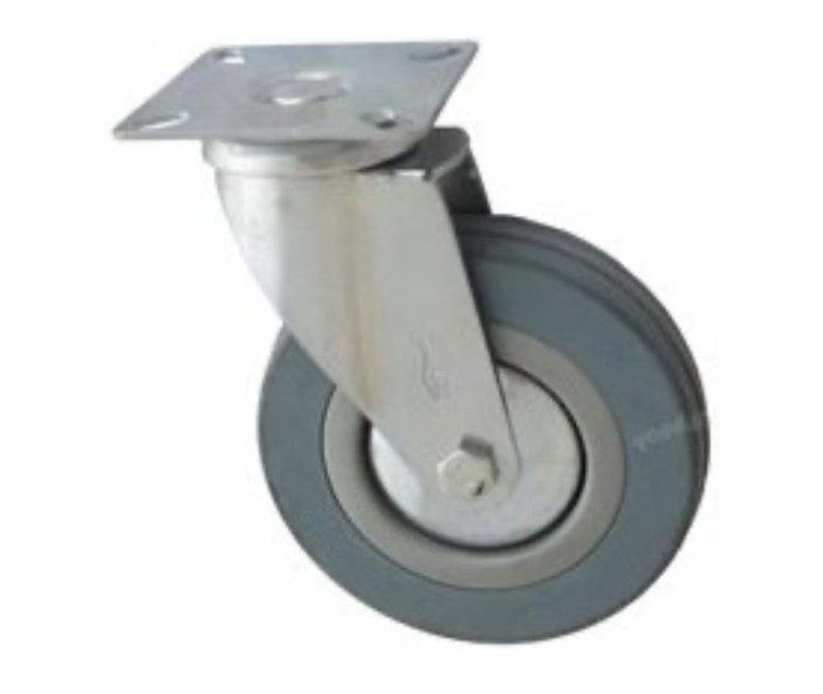 چرخ بیمارستانی طوسی قطر 125 میلی متر کفی گردان بدون ترمز