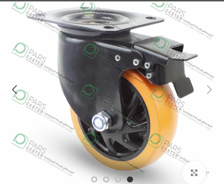 چرخ پایه مشکی نارنجی کفی ترمزدار tab پارس قطر ۷۵