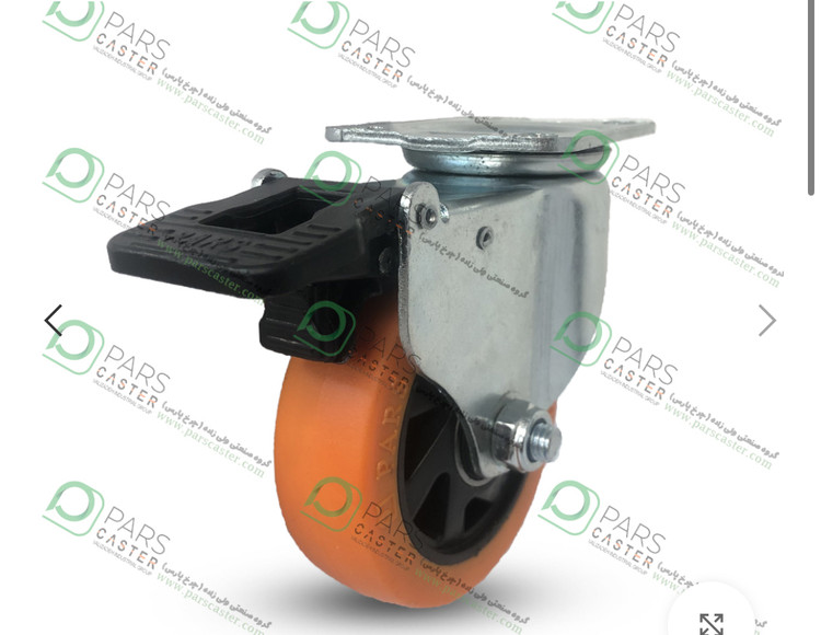 چرخ پایه سفید نارنجی کفی ترمزدار قطر ۷۵