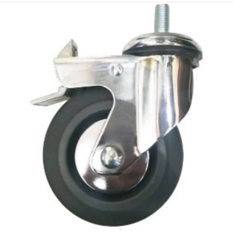 چرخ بیمارستانی آبکاری کروم پیچی گردان ترمزدار قطر ۷۵ میلی متر