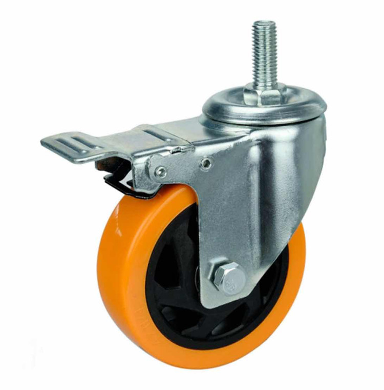 چرخ لوکس نارنجی پایه گردان ترمزدار وارداتی سایز ۱۲۵ پیچی ( در صورت سفارش عمده قیمت توافقی) با متریال خارجی و ضمانت تعویض
