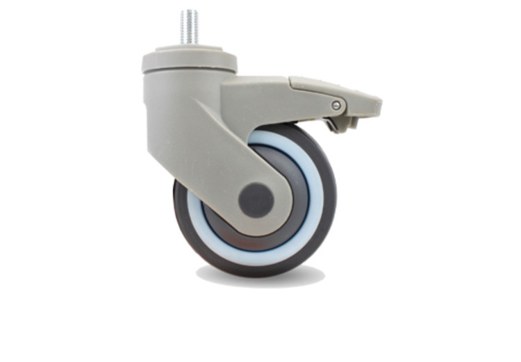 چرخ بیمارستانی پی وی سی دور آبی پیچی گردان ترمزدار قطر 75 میلی متر