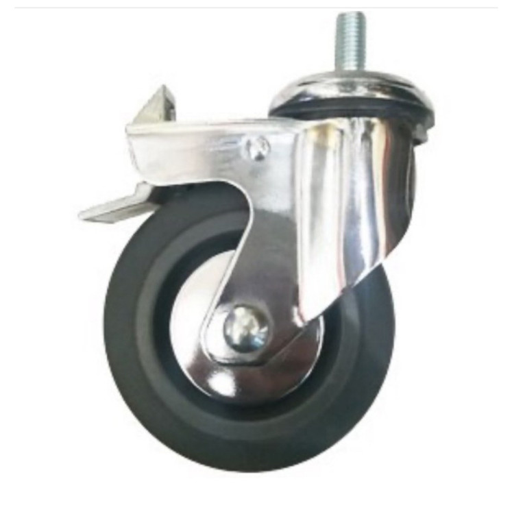 چرخ بیمارستانی آبکاری کروم پیچی گردان ترمزدار قطر ۷۵ میلی متر