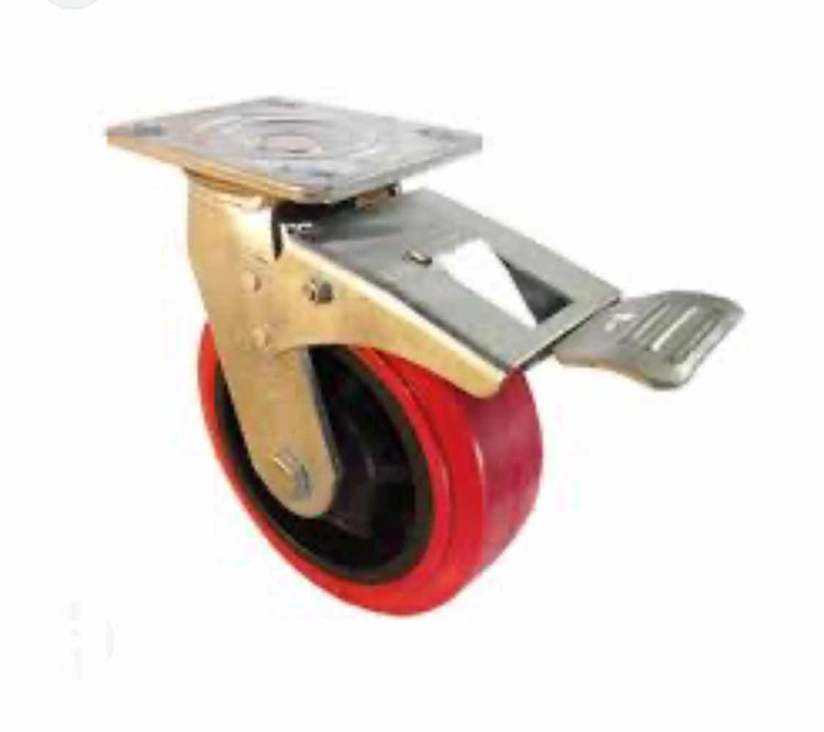 چرخ پلی یورتان رینگ پلاستیک پلی آمید سایز ۱۲۵ کفی ترمزدار