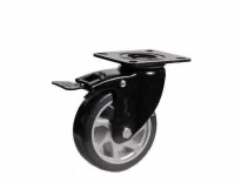 چرخ پایه مشکی پره ای سایز ۱۲۵ ترمزدار