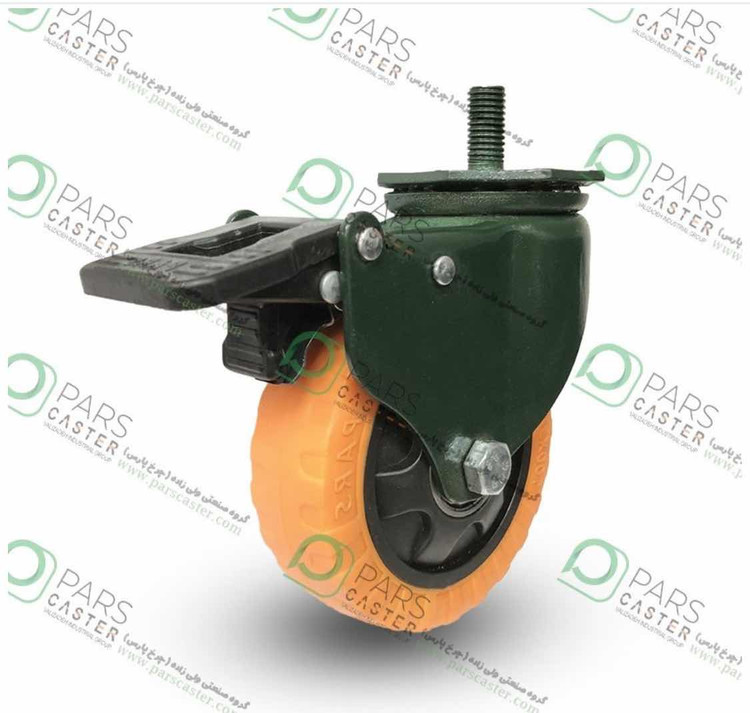 چرخ سومر پیچی گردان ترمزدار نارنجی سایز ۷۵ ( قیمت عمده تماس)