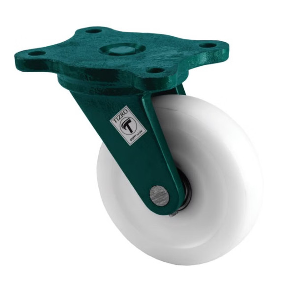 چرخ چدنی(حمل بارهای بسیار سنگین در کارخانجات و انبارها-ماشینآلات صنعتی و خطوط تولید-دستگاههای پرسی، کورهها و تجهیزات دمای بالا-سطوح صاف و سخت مثل بتن و فلز)