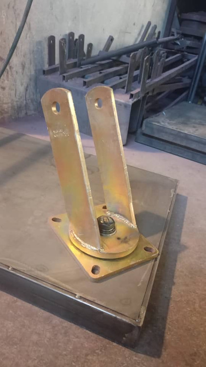 پایه خالی چرخ فرغونی بادی گردان آبکاری طلایی با بلبرینگ کف گرد وتحمل بار ٣ تن به همراه شافت وسط