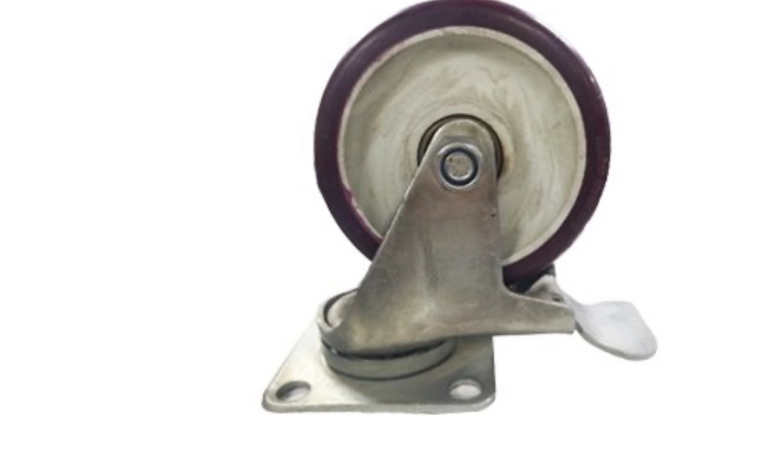 چرخ پلی آمید زرشکی گردان ترمزدار قطر ۱۲۵ میلی متر
